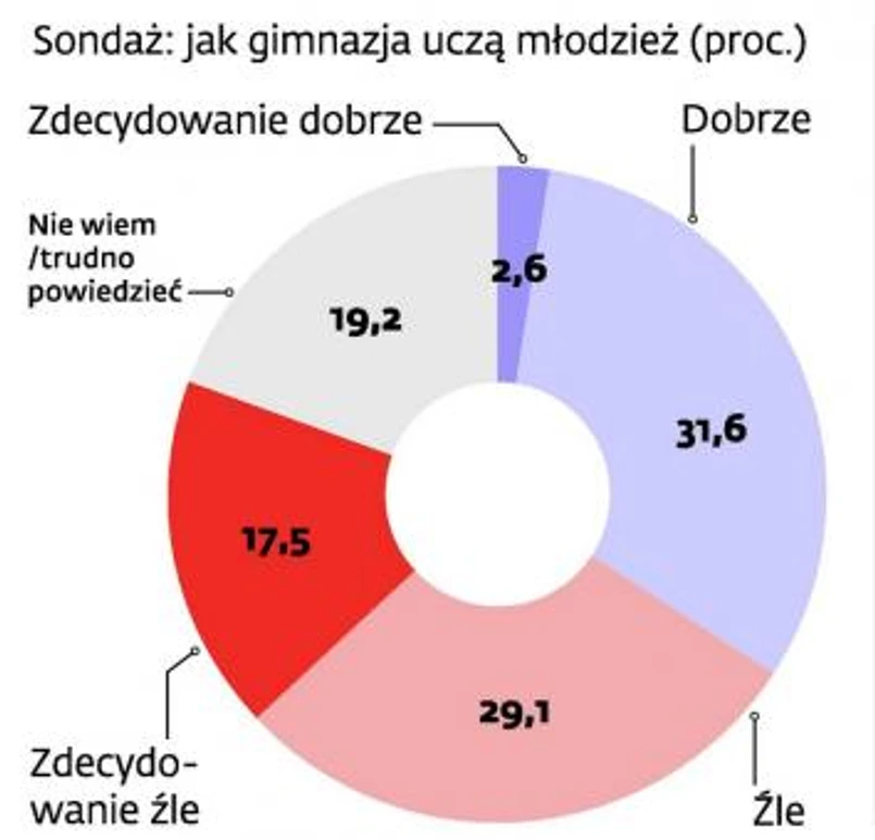 Temat gimnazjów powraca zazwyczaj przy okazji dramatycznych wydarzeń. Głośne samobójstwo, ciąża czy odwyk narkotykowy przenosi je z poziomu dyskusji rodziców do mediów i na sale Sejmu. O zmiany w systemie kształcenia apelują prawie wszystkie partie opozycyjne. Bilans gimnazjów – mimo ich grzechów głównych – nie jest jednak jednoznaczny, co potwierdzają analitycy zapytani przez DGP.
