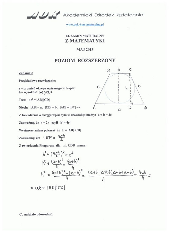 Rozwiązania zadań z egzaminu maturalnego z matematyki na poziomie rozszerzonym