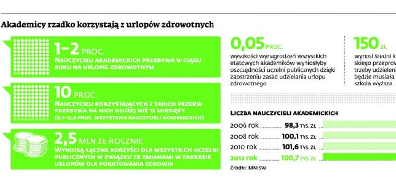 Dlatego rząd zaproponował także, aby zarówno nauczycielowi akademickiemu, jak i uczelni przysługiwało prawo odwołania się od orzeczenia lekarskiego do wojewódzkiego ośrodka medycyny pracy. Naukowiec nie będzie ponosił kosztów badań. Opłaty pokryje uczelnia. Łączny wymiar wolnego w okresie całego zatrudnienia akademika nie będzie mógł przekroczyć jednego roku.