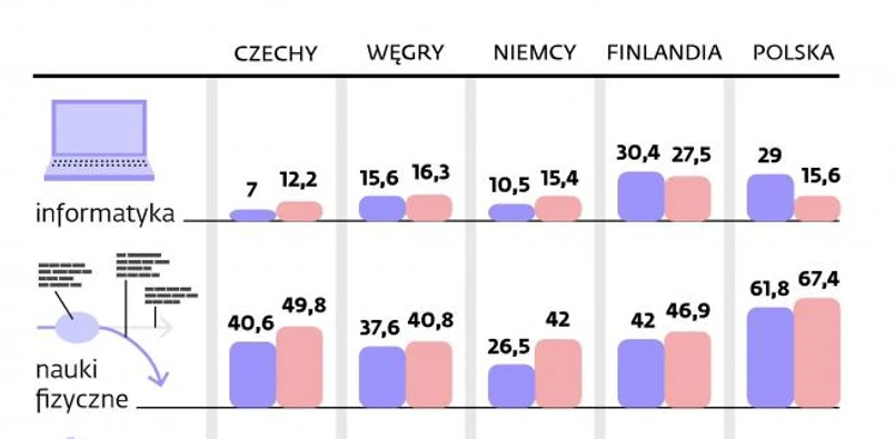 Potwierdzają to liczby zbierane przez Organizację Współpracy Gospodarczej i Rozwoju (OECD). przez 11 lat średni udział kobiet w krajach należących do organizacji zwiększył się o 1 pkt proc., z 40 proc. do 41 proc., podczas gdy we wszystkich dyscyplinach wzrósł z 54 proc. do 58 proc. Znaczące sukcesy w zachęcaniu dziewczyn do studiowania kierunków ścisłych według raportu „Education at Glance 2013” osiągnęli tylko Czesi, Niemcy, Słowacy i Szwajcarzy. W tych krajach udało się zwiększyć udział dziewczyn w dziedzinach określanych mianem MST (czyli „mathematics, science, technology” – matematyka, nauka, technologia) o 10 pkt proc.