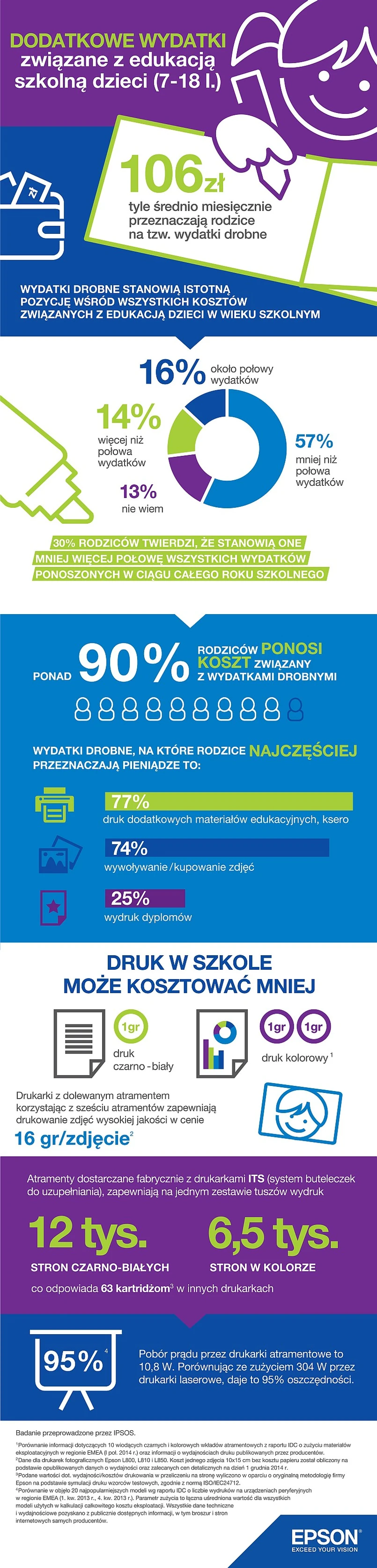 „O tym, że początek roku szkolnego wiąże się z poważnymi wydatkami, wie każdy rodzic. Wysłanie pociech do szkolnej ławy oznacza sierpniowe zakupy podręczników, zeszytów, przyborów do pisania, stroju na WF, etc. - tak zwanej wyprawki. Myli się jednak ten, kto by uważał, że na tym kończy się drenaż portfela: nauka, mimo konstytucyjnego bezpłatnego dostępu do edukacji, wiąże się z dodatkowymi wydatkami, a te jednak trzeba ponosić przez cały rok szkolny. Oprócz kosztów “twardych”, takich jak opłaty za korepetycje, zajęcia dodatkowe czy koszty dojazdu, sporą część wydatków zajmują jednorazowe składki czy zakupy na rzecz ucznia - tzw. wydatki drobne. Te często umykają świadomości i klasyfikacji, lecz ich optymalizacja może zdecydowanie polepszyć stan rodzinnego budżetu” – wyjaśnia Ewa Pytlak, Marketing Coordinator Epson Polska.