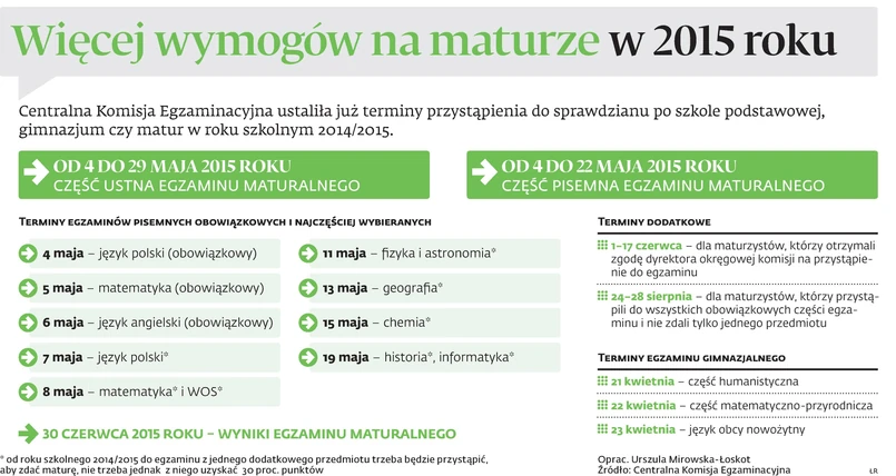 Centralna Komisja Edukacyjna ustaliła już terminy przystąpienia do sprawdzianu o szkole podstawowej, gimnazjum i matur w roku szkolnym 2014/2015.