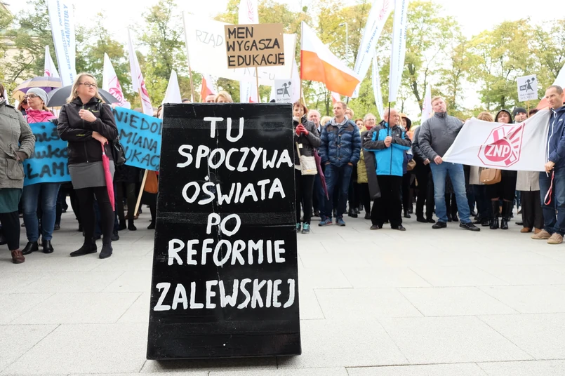 "Grabarze polskiej oświaty", "Nie trzeba rewolucji, trzeba mniejszych klas", "reforma dla reformy" to tylko część haseł głoszonych przez protestujących. W poniedziałek po południu przed urzędami wojewódzkimi w całej Polsce odbyła się manifestacja ZNP. Na ulice 17 polskich miast wyszli nie tylko nauczyciele, ale także rodzice, uczniowie i samorządowcy.