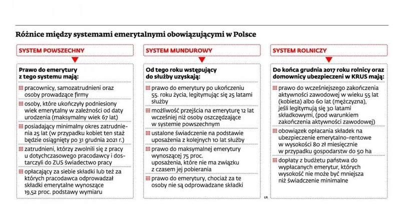 Wskazuje, że poza powszechnym systemem emertytalnym funkcjonują nie tylko KRUS-owcy, ale także górnicy, służby mundurowe czy nauczyciele. Przywileje przyznane tym grupom powodują, że osoby rozpoczynające prace w jednym z uprzywilejowanych pod względem świadczeń zawodzie nie decydują się na zmianę profesji, bo im się to po prostu nie opłaca.