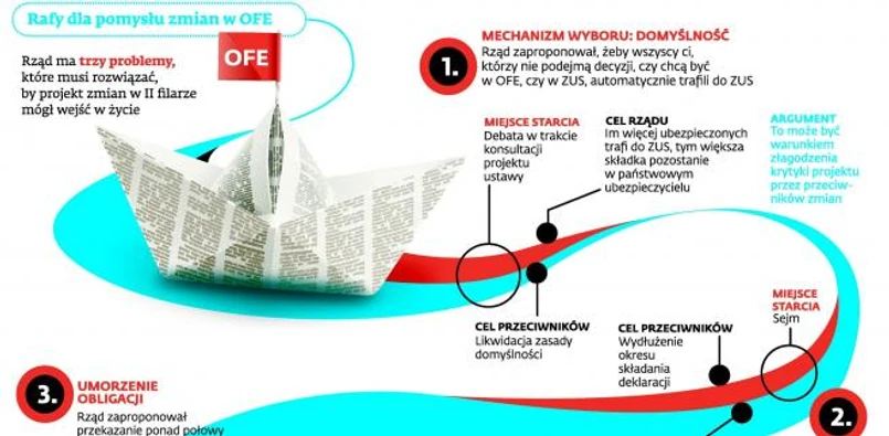 W trzech punktach rząd czeka ostry konflikt z przeciwnikami proponowanych zmian w OFE oraz opozycją w Sejmie. Ich efektem może być znaczna korekta przedstawionych pomysłów. Albo spór przed trybunałami