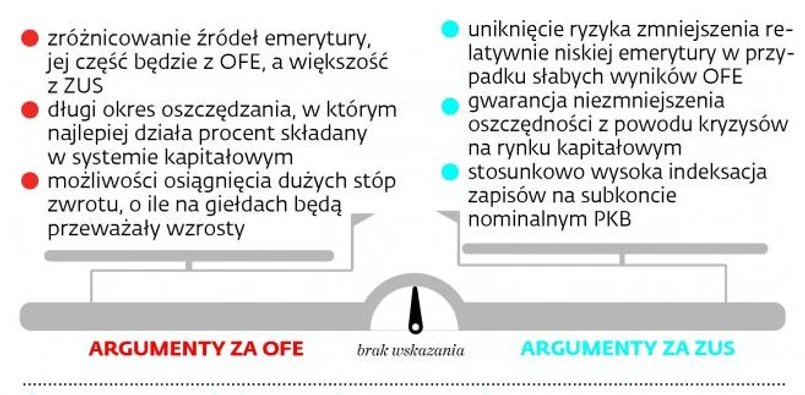 Od dziś do końca lipca ubezpieczeni mogą wybierać, czy część ich emerytalnej składki ma trafiać do ZUS, czy do OFE. Wybór nie będzie łatwy. Prezentujemy zestaw argumentów dla osób zastanawiających się, co zrobić