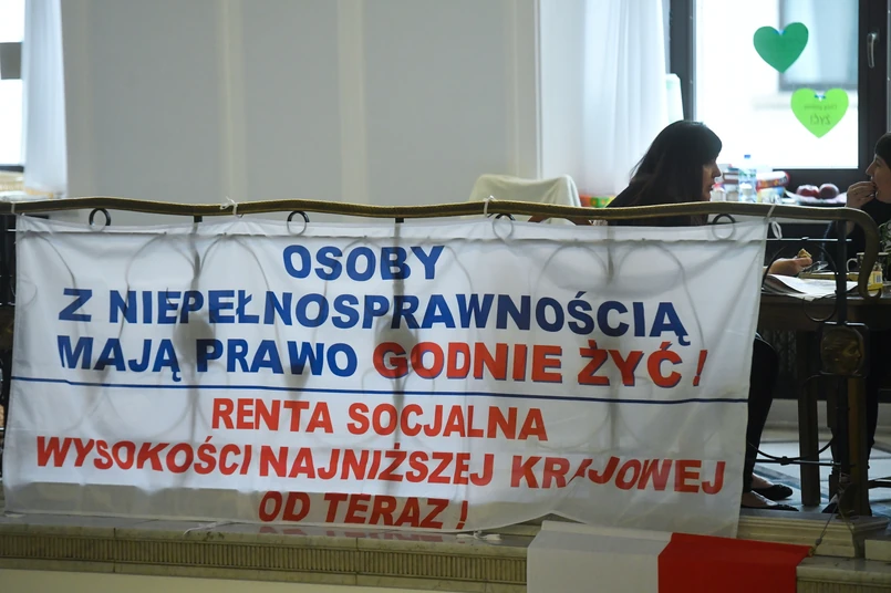 Według rządowych statystyk w Polsce osób z niepełnosprawnościami, które mają prawne potwierdzenie niepełnosprawności, jest ponad 3 mln. W rzeczywistości, jak podają, jest ich dużo więcej – od 4 do 7 mln. 291 tysięcy z tych osób jest niezdolnych do samodzielnej egzystencji. Grupa, której należy się pomoc, pomocy po raz kolejny zaczęła się domagać. 6 marca opiekunowie osób z niepełnosprawnościami wraz ze swoimi podopiecznymi pojawili się w sejmie i wznowili zawieszony w 2018 roku protest. Przygotowali projekt ustawy i domagają się podwyższenia renty socjalnej. - Przyszliśmy z jednym postulatem - podwyższenia renty socjalnej do kwoty minimalnego wynagrodzenia. Niestety, rządzący nie chcą podjąć z nami żadnych rozmów na ten temat - relacjonuje Alicja Jochymek, uczestniczka protestu.