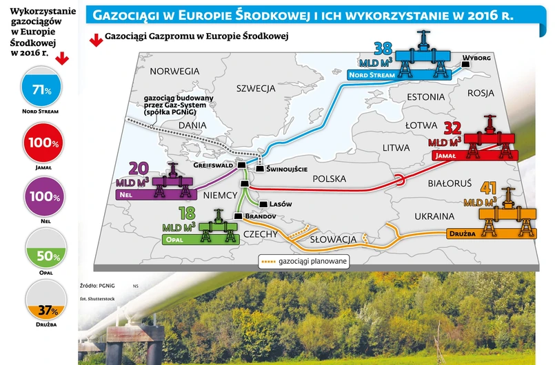 Takiego scenariusza obawia się także PGNiG. Analizy wykonane przez polską spółkę wskazują także na ryzyko zaprzestania przesyłania surowca przez biegnący przez Ukrainę gazociąg Braterstwo. – Bezpośrednio po uruchomieniu gazociągu Opal transfer surowca tą drogą zwiększył się o 20 mld m sześc. kosztem gazociągu Braterstwo. W konsekwencji Ukraina traci na opłatach pobieranych za przesył ok. 450 mln euro rocznie – podkreśla Woźniak. Jego zdaniem taki sam scenariusz może dotyczyć Polski, jeśli Opalem popłynie więcej gazu kosztem surowca przesyłanego przez gazociąg Jamalski. Co więcej, Gazprom będzie mógł kształtować politykę cenową według własnych upodobań.