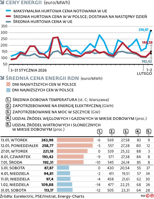 Energetyka staje się coraz bardziej polem nierównej rywalizacji. Dane rynkowe za 2025 r. pokazują wyraźnie, że Polska zaczyna tracić dystans do Niemiec w kosztach energii elektrycznej. Średnie ceny spot wyniosły w zeszłym roku w Niemczech 89 euro/MWh, podczas gdy w Polsce były aż o 15 proc. wyższe – 104 euro/MWh. Różnica ta pogłębiła się w styczniu 2026 r.: 110 euro/MWh w Niemczech wobec 143 euro/MWh u nas.
