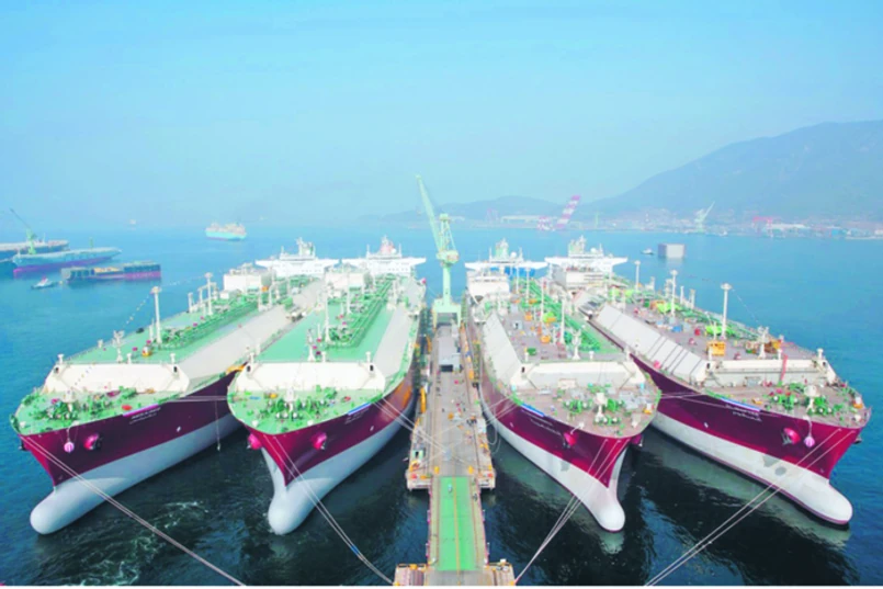 Skonstruowanie tych nafaszerowanych elektroniką gigantów to nie lada sztuka, dlatego najnowocześniejsze i największe metanowce powstają w stoczniach światowych liderów: Samsunga, Daewoo, Hyundaia Corp., w stoczniach południowokoreańskich, a także japońskich (Mitsubishi Heavy, Kawasami) oraz chińskich. Te trzy kraje kontrolują blisko 90 proc. światowej produkcji metanowców. Największy metanowiec świata typu Q-Max (Q to symbol Kataru, lidera w eksporcie LNG) powstał w koreańskiej stoczni należącej do Samsunga i Daewoo – tankuje 266 tys. m sześc. gazu, jest długi na 345 m, szeroki na 53,8 m, a jego zanurzenie to 12 m. Q-Flex, który w przyszłym roku przypłynie do Świnoujścia, jest niewiele mniejszy: ma pojemność do 216 tys. m sześc., jest długi na 315 m i szeroki na 50 m.