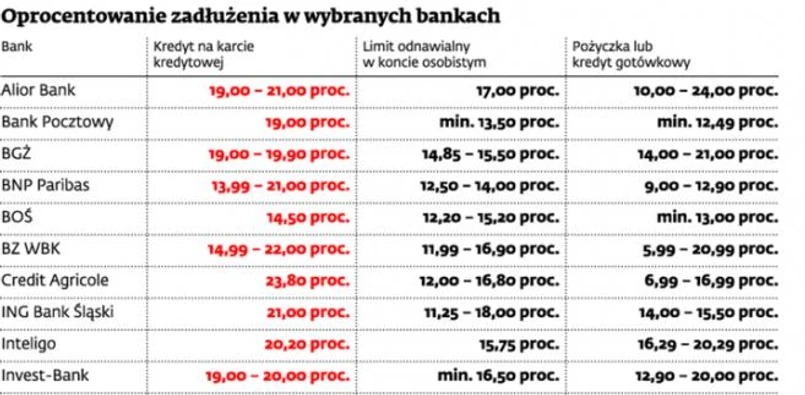Interesującym sposobem spłaty zadłużenia na kredytówce jest kredyt ratalny w karcie. Oferuje go kilka banków, jednak w różnych instytucjach produkty te mają różną konstrukcję. Na przykład w BPH możemy w ten sposób spłacić konkretny większy wydatek. To dobre rozwiązanie dla osób chcących kartą sfinansować np. zakup pralki. Dla tych, którzy chcą pozbyć się zadłużenia, lepsze rozwiązanie ma BGŻ: na raty można rozłożyć całość długu, czy mBank, który umożliwia spłatę do 80 proc. dopuszczalnego limitu na karcie. Banki chętnie na taki układ przystają, a jednocześnie jest to tańsze rozwiązanie od zwykłego kredytu w karcie.