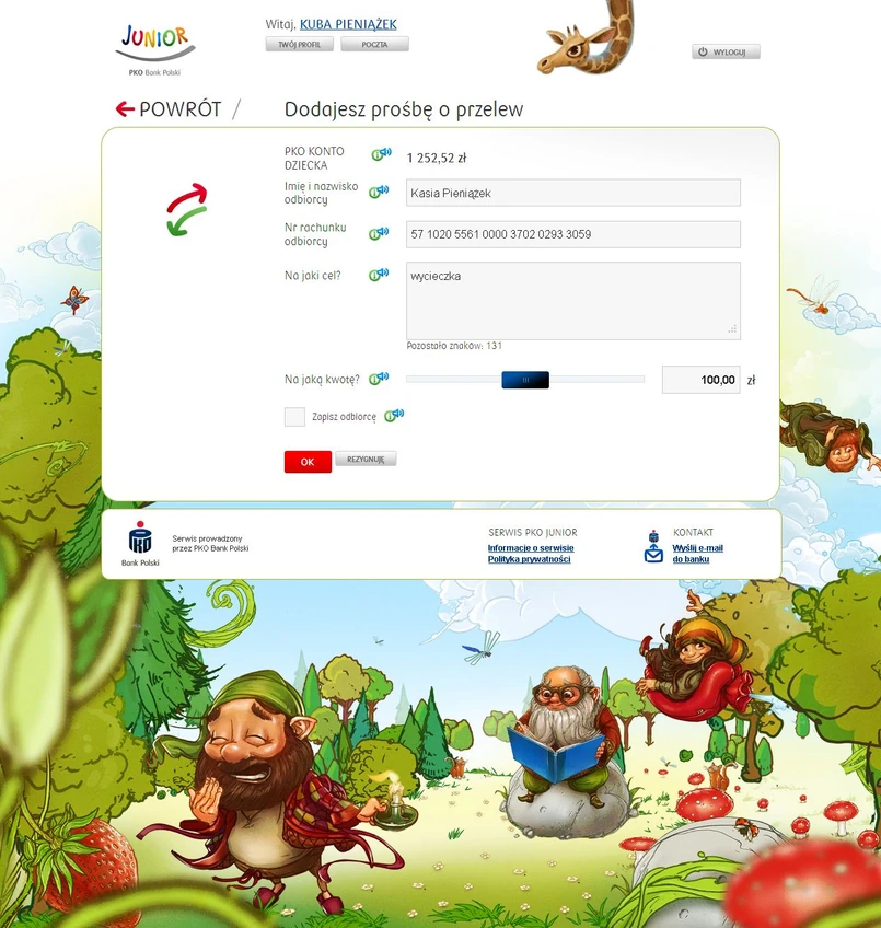 Główne funkcjonalności serwisu transakcyjnego PKO Junior to:
