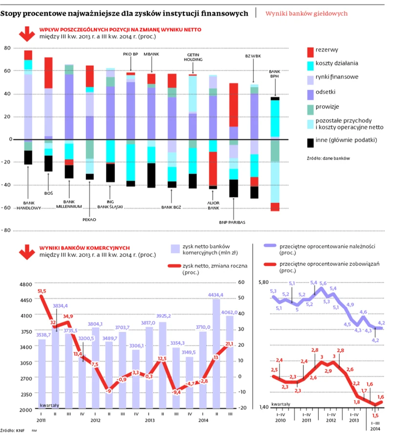 Zyski urosły głównie dlatego, że banki wykorzystały niskie stopy procentowe. Poprawa wyniku odsetkowego odpowiada za więcej niż połowę wzrostu wyniku netto giełdowych
