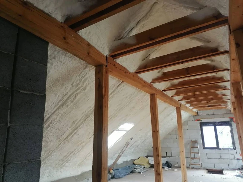 Pianka poliuretanowa to jedna z najlepszych opcji izolacji, niezależnie od tego, jaki kształt dachu ma budynek – dwuspadowy, czterospadowy, modułowy czy kopertowy. Im bardziej skomplikowany kształt, tym ULTRAPUR korzystniej wypada na tle innych materiałów izolacyjnych. Dzięki natryskowej metodzie wytwarzania pianki na miejscu budowy („in-situ”) tworzy się na ścianach oraz stropach ciągłą warstwę izolacji cieplnej i akustycznej, bez mostków termicznych. Piana, wnikając w każdą szczelinę, znakomicie wiąże się z podłożem. W ten sposób uszczelnia budynek, chroniąc zarówno przed zimnym wiatrem, jak i ciepłymi promieniami letniego słońca. Naniesiona warstwa poliuretanu ma charakter monolityczny, nic z niej nie odpada, ani nie wykrusza się, nawet po wielu latach od aplikacji.