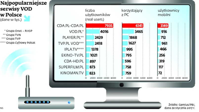 Widać więc, że kluczem do sukcesu jest oryginalna oferta. – Na rynku VOD panuje ogromne poruszenie. Siłą międzynarodowych gigantów jest ich globalność i zasięg – w wyścigu o prawa do najlepszych produkcji wygrywają z lokalnymi graczami właśnie tymi atutami. Zainteresowanie Polską, największym rynkiem w Europie Środkowo-Wschodniej, nie dziwi – mówi Albrychiewicz. Z danych Gemiusa wynika, że tylko 10 najpopularniejszych serwisów VOD odwiedziło w styczniu ponad 13 mln osób, czyli połowa polskich internautów.
