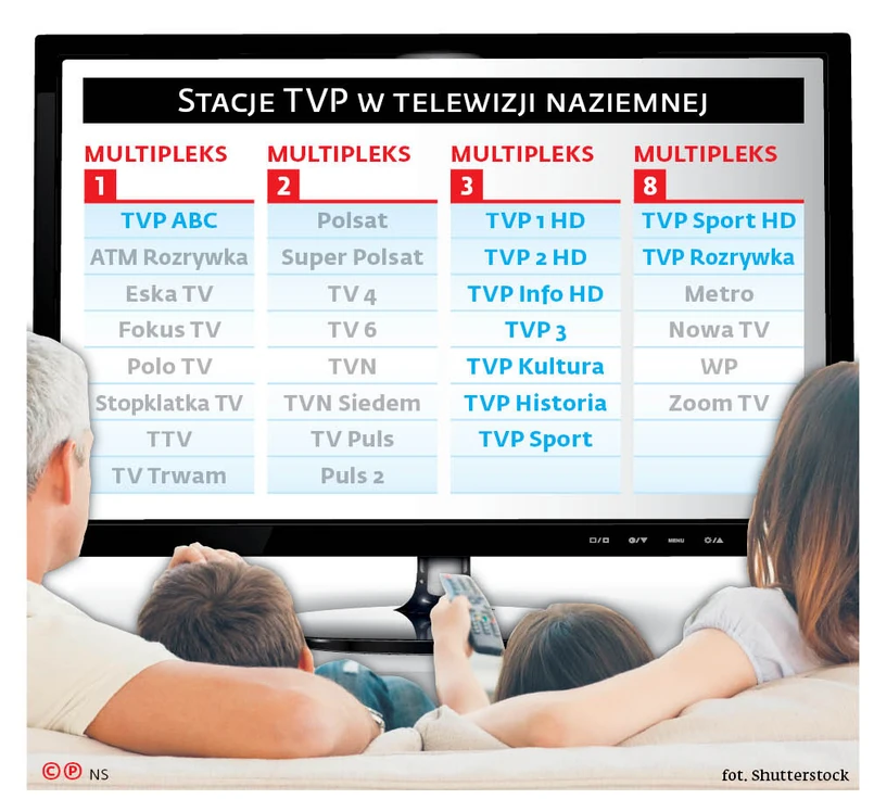 Ważnym elementem tej strategii są stacje Telewizji Polskiej nadawane naziemnie. Spośród gospodarstw domowych w kraju ponad jedna trzecia odbiera telewizję tylko z tego źródła. Obecnie w ten sposób TVP rozpowszechnia sygnał dziewięciu swoich kanałów – przy czym jeden z nich, TVP Sport, jest nadawany na dwóch multipleksach: w wysokiej rozdzielczości na multipleksie ósmym i w standardowej na trzecim. W systemie telewizji naziemnej stacje TVP osiągają o ponad połowę lepsze wyniki oglądalności niż w telewizji płatnej (kablowej i satelitarnej). Nadawca liczy, że jego udział w tym sektorze może być jeszcze większy. Dlatego, jak wynika z naszych informacji, planuje powiększenie oferty naziemnej w najbliższych latach o dwie lub trzy stacje. Trzy jest tu liczbą graniczną, gdyż z obliczeń TVP wynika, że po jej przekroczeniu opłacalność tego modelu spada, tzn. korzyści ze zwiększenia zasięgu w bezpłatnym modelu naziemnym przy większej liczbie kanałów nie będą już rekompensowały tego, co nadawca straci na opłatach od sieci kablowych i platform satelitarnych.