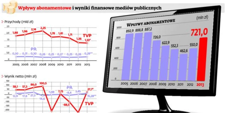 W ubiegłym roku wpływy z abonamentu pierwszy raz od 2005 r. przekroczyły 40 proc. zsumowanych przychodów Telewizji Polskiej i Polskiego Radia. Obie spółki pierwszy raz od 2010 r. były zyskowne.