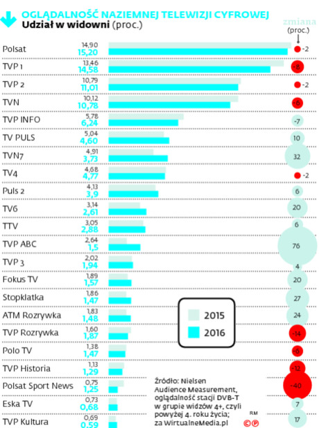 Nowi nadawcy liczyli na mocne wsparcie ze strony TVP, która ma tam zapewnione miejsce dla czterech kanałów. Ale na razie muszą działać sami. TVP wciąż nie zdecydowała bowiem, co tam zamieści. Szefostwo czeka, aż rozstrzygną się losy ustawy abonamentowej. Bez gwarancji większego finansowania TVP nie chce podejmować zobowiązań. Zwłaszcza że koszt jest duży, obejmuje, oprócz inwestycji w program, także wydatki na koncesję i nadawanie. Nowi gracze zapłacą Emitelowi za transmisję do 2025 r. swoich kanałów po 62 mln zł.