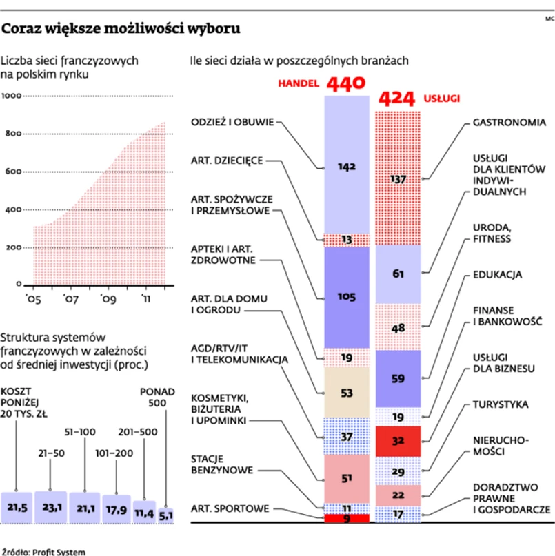 biznesu na każdą kieszeń. Jeszcze parę lat temu tylko nieliczne sieci oferowały przedsiębiorcom nawiązanie współpracy za kwotę mniejszą niż 50 tys. zł. Obecnie, by zaistnieć na rynku pod znanym logo, wystarczy zainwestować nawet mniej niż 20 tys. zł. Przyczyniła się do tego rosnąca z roku na rok konkurencja, która zmusza istniejące sieci do coraz większej rywalizacji o potencjalnego franczyzobiorcę.