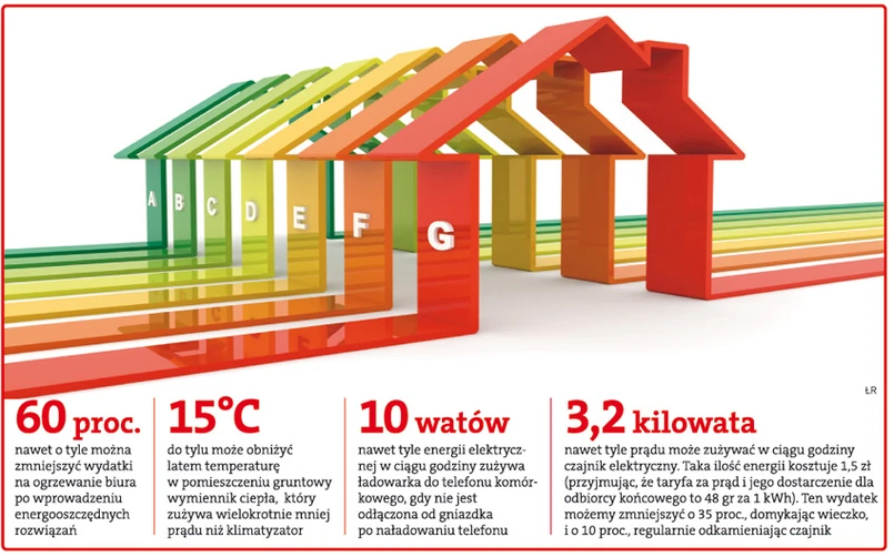 Dlatego szczególnie w Polsce tak ważne jest, żeby zacząć oszczędzać energię. Nie musimy jednak traktować tego jak uciążliwy przymus. Po pierwsze bowiem oszczędzanie energii nam się opłaci. Tym bardziej, że niedawno polski sejm przyjął ustawę o efektywności energetycznej, wprowadzającą finansowe zachęty do oszczędzania energii (tzw. białe certyfikaty – szerzej o nich napiszemy w jednym z kolejnych dodatków z cyklu „Nie trać energii”). Po drugie w wielu firmach można zmniejszyć zużycie energii nawet o 20 proc., nie inwestując w to ani złotówki. Wystarczy tylko zracjonalizować swoje postępowanie i swoich pracowników w korzystaniu ze sprzętów zużywających energię. Oto kilka pierwszych z brzegu przykładów. Wiele osób, wychodząc z pracy, nie wyłącza komputerów – zostawia je w trybie czuwania. Tymczasem komputer z wygaszonym ekranem, w trybie czuwania, zużywa – podobnie jak wiele innych urządzeń – pokaźną ilość prądu. Razem z monitorem nawet 10 watów na godzinę (w przypadku laptopa jest z kolei wręcz tak, że w trybie czuwania może zużywać niemal tyle samo energii elektrycznej, co wtedy, gdy na nim pracujemy). Ktoś powie, że to niewielkie marnotrawstwo. Ale tak jest tylko pozornie. Bo przecież w każdym biurze jest cała masa urządzeń, zasilanych energią: drukarki, kserokopiarki, niszczarki, faksy, telefony, lodówki, czajniki elektryczne, ekspresy do kawy itd. I gdy zacznie się racjonalniej podchodzić do kwestii zużycia energii w każdym z nich, to w sumie możemy bardzo dużo zaoszczędzić.