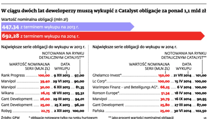 Firmy budowlane z Catalyst muszą do końca roku wykupić obligacje za niemal 450 mln zł. Większość przygotowania do wykupu długu lub jego zrolowania rozpoczyna na wiele miesięcy przed terminem wygaśnięcia.