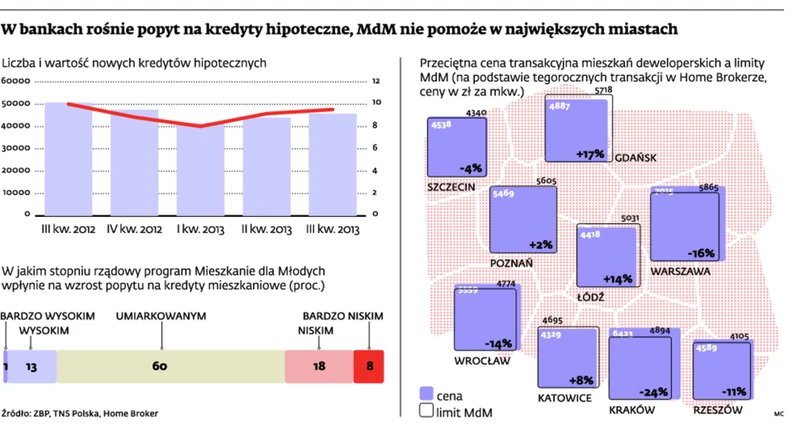 Z danych pośrednika wynika, że lokale w ramach MdM mało dostępne będą m.in. w Warszawie, Krakowie i we Wrocławiu. Tam limity cenowe mogą pozwolić na kupno w ramach MdM mieszkania tylko w mało atrakcyjnych lokalizacjach na obrzeżach miast.
