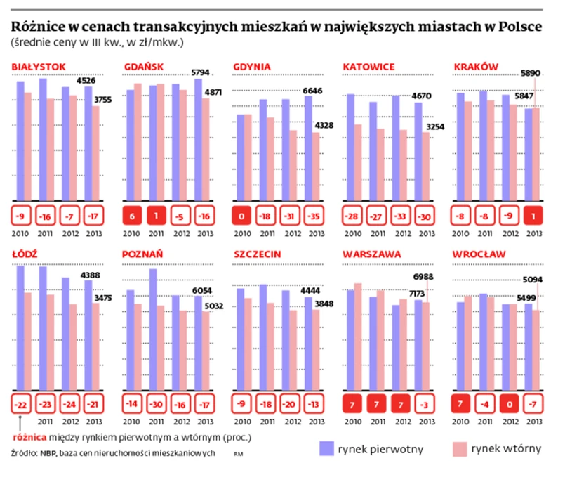 Deweloperzy w największych polskich aglomeracjach sprzedali w 2013 r. blisko 36 tys. lokali. To oznacza, że w Warszawie, Krakowie, Poznaniu, Trójmieście, Łodzi i we Wrocławiu popyt na nowe mieszkania wzrósł w porównaniu z 2012 r. o 17,5 proc. i wrócił do poziomu z rekordowego dotychczas roku 2007. Według danych firmy doradczej Reas dobre wyniki sprzedaży, przewyższające liczbę mieszkań wprowadzonych na rynek, spowodowały, że na koniec roku liczba lokali w ofercie deweloperów spadła szósty kwartał z rzędu i wyniosła nieco ponad 41 tys. lokali. To o ponad 27 proc. mniej niż w II kw. 2012 r., kiedy ich oferta była rekordowo wysoka.