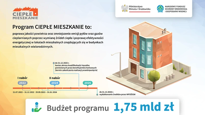 „Ciepłe Mieszkanie” to uzupełnienie programu „Czyste Powietrze”, kierowanego do właścicieli domów jednorodzinnych. 29 września br. rozpoczął się drugi nabór wniosków dla gmin, które – za pośrednictwem 16 wojewódzkich funduszy ochrony środowiska i gospodarki wodnej – otrzymają pieniądze na eko-inwestycje dla swoich mieszkańców, czyli beneficjentów końcowych „Ciepłego Mieszkania”.
