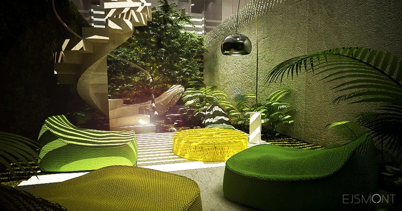 Betonowy dom z wewnętrznym patio to ciekawy projekt, dla tych którzy cenią sobie dużo zieleni w pomieszczeniach i piękne widoki za oknem.