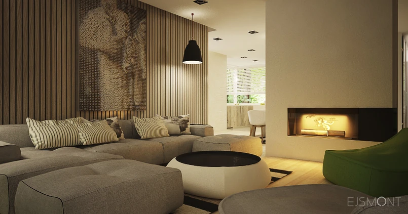 1 Nowoczesne wnętrze ocieplone drewnem - projekt Ejsmont