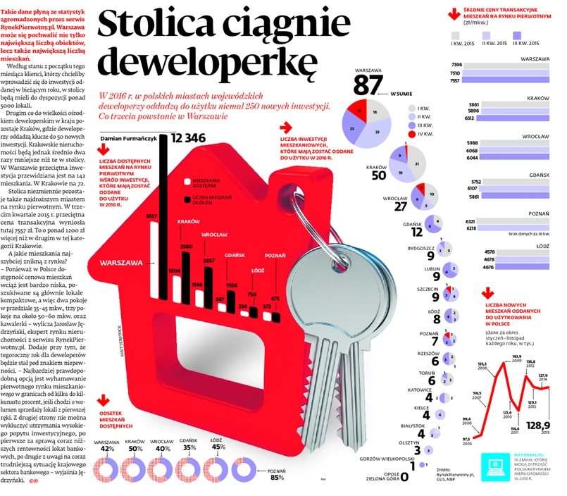 Takie dane płyną ze statystyk zgromadzonych przez RynekPierwotny.pl. Warszawa może się pochwalić nie tylko największą liczba obiektów, lecz także największą liczbą mieszkań.