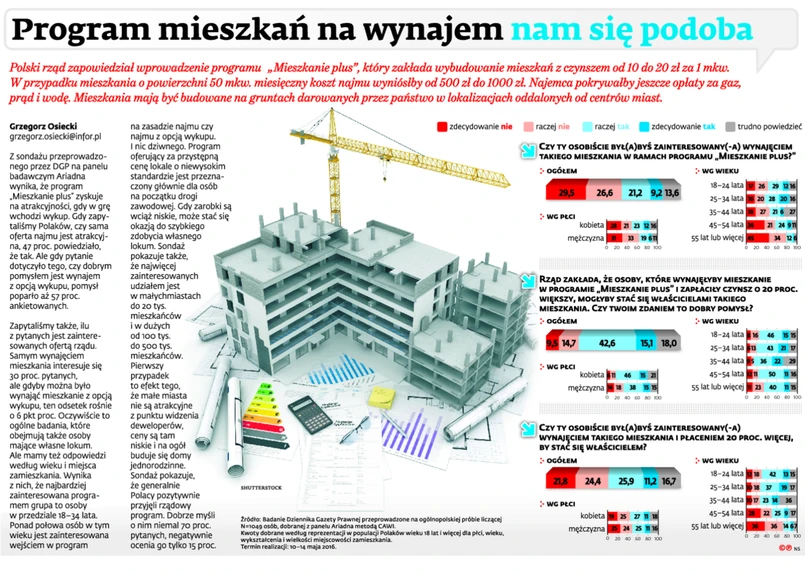Polski rząd zapowiedział wprowadzenie programu "Mieszkanie plus", który zakłada między innymi wybudowanie mieszkań z czynszem od 10 do 20 zł za 1 mkw. Najemca pokrywałby jeszcze opłaty za gaz, prąd i wodę.