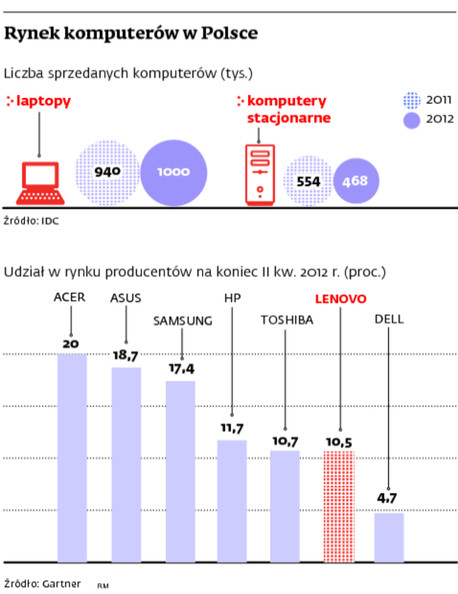 Firma zapowiada, że nie tylko jej laptopy, lecz także ultrabooki i tablety będą nieco tańsze niż u konkurencji. To kontynuacja dotychczasowej strategii, dzięki której Lenovo zwiększył udziały w rynku z około 4 do 10 proc. – Na koniec roku chcielibyśmy mieć już udział kilkunastoprocentowy – deklaruje Andrzej Sowiński.