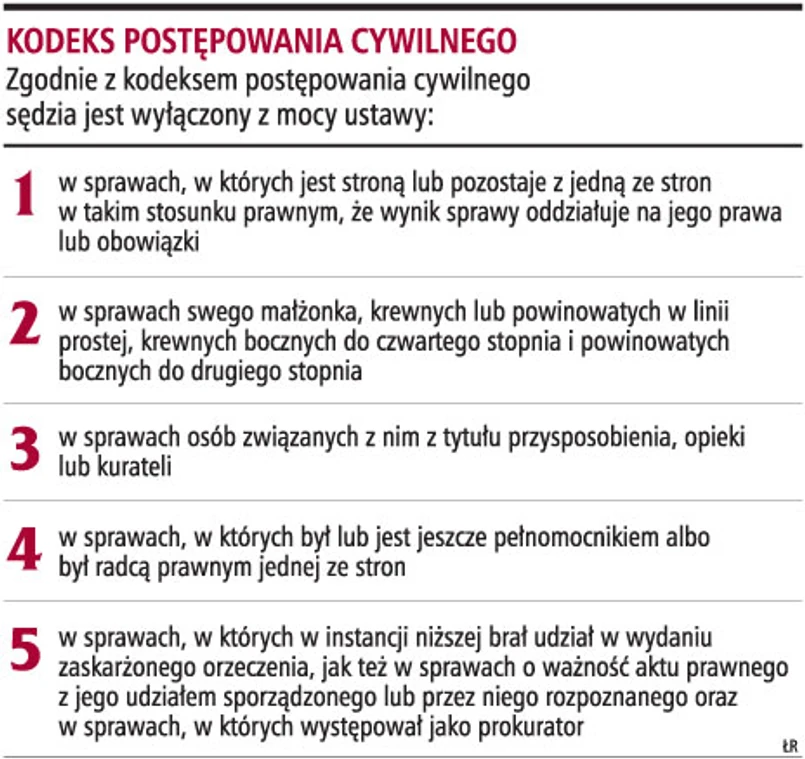 Trybunał Konstytucyjny uznał wczoraj, że przepis kodeksu postępowania cywilnego, w zakresie w jakim ogranicza przesłanki wyłączenia sędziego jedynie do stosunku osobistego, pomijając okoliczności, które mogą mieć wpływ na jego bezstronność, narusza ustawę zasadniczą.