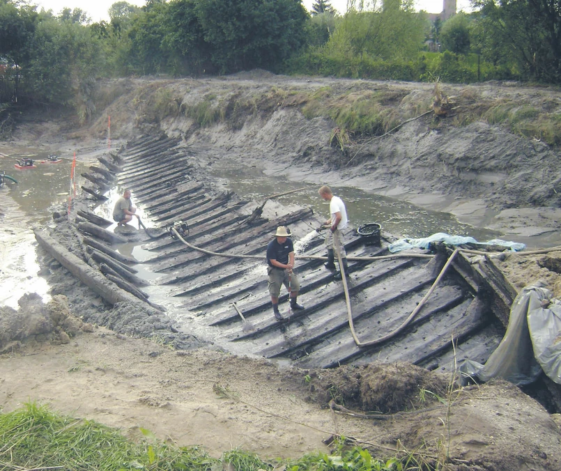 informacji o tym, gdzie znajduje się statek, żeby zapobiec niepożądanym wyprawom poszukiwaczy skarbów. Gdy lato było szczególnie suche, z wody wyłaniały się burta i ogromny maszt. Zawiadamiałam wtedy wojewódzkiego konserwatora zabytków albo pracowników PMA, którzy przyjeżdżali, żeby zabezpieczyć wrak przed wysuszeniem i degradacją – mówi Katarzyna Łuczak-Jasińska i dodaje, że prace archeologiczne spowodowały w ich posesji niemałe szkody. – Uszkodzonych zostało 30 drzew, powiększył się staw, a pomniejszył obszar pola uprawnego. Rozumiemy, że to było konieczne i nie mamy żadnego żalu do archeologów. Problem w tym, że po pracach w 2009 r. naszymi stratami w ogóle nie zainteresował się ani wojewódzki, ani generalny konserwator zabytków, a pismo w tej sprawie do dzisiaj pozostało bez odpowiedzi. Przed wydobyciem w 2018 r. porozumieliśmy się już z PMA i przygotowaliśmy plan działań w celu zapobieżenia ewentualnym szkodom, ale za pierwszym razem nasze straty zostały zupełnie zignorowane.