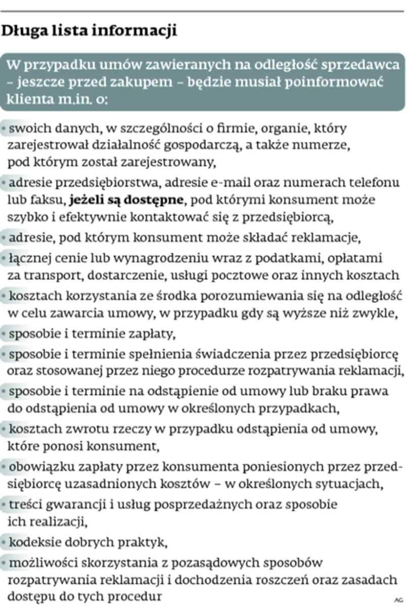 – Celem ustawodawcy europejskiego było umożliwienie konsumentowi korzystania z szybkiego i efektywnego sposobu kontaktowania się z przedsiębiorcą. Naszym zdaniem wynika z niej, że istnieje obowiązek podawania przynajmniej numeru telefonu i faksu lub adresu poczty elektronicznej, o ile jest dostępny – wyjaśnia Michał Herde.