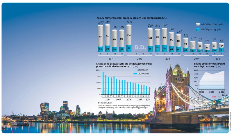 – Spadek liczby chętnych do pracy na Zachodzie jest zrozumiały, ponieważ bezrobocie jest najniższe od ponad ćwierć wieku i nie ma problemów ze znalezieniem dobrze płatnego zajęcia – ocenia prof. Zenon Wiśniewski z Uniwersytetu Mikołaja Kopernika. Zaskakujące jest jednak to, że według danych GUS w II kw. wśród osób zainteresowanych pracą za granicą więcej było takich, które pracują (51 tys.) niż bezrobotnych (37 tys.). Wcześniej relacje były odwrotne.