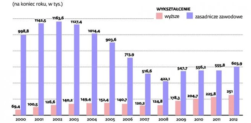 To niechlubny rekord. Jednak podobne rekordy bije bezrobocie także wśród absolwentów zawodówek – szkół, które miały gwarantować zatrudnienie. DGP przedstawia portret bezrobotnych z dwóch biegunów wykształcenia.