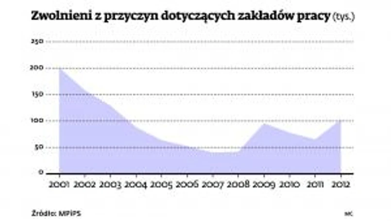 W ubiegłym roku w urzędach pracy zarejestrowało się 102,5 tys. osób, które straciły pracę z powodu kłopotów finansowych firm, ich likwidacji lub upadłości albo zmian organizacyjnych i produkcyjnych – wynika z danych resortu pracy. To o 57,5 proc. więcej niż w roku poprzednim. Tak dużo bezrobotnych, którzy stracili zajęcie z winy zakładu pracy, nie było od dziewięciu lat.