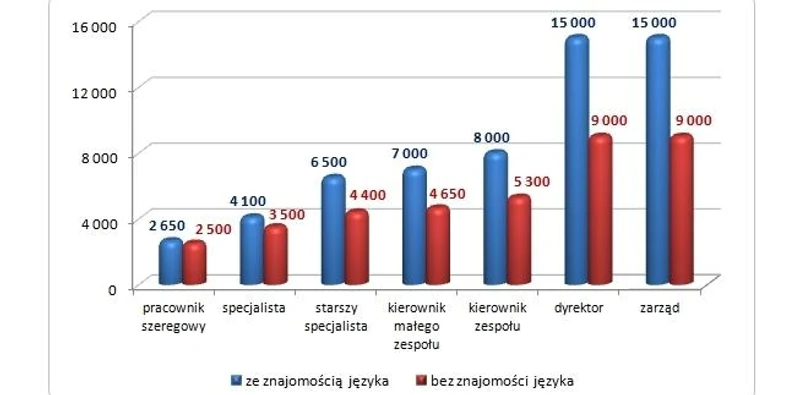 W 2012 roku starsi specjaliści i kierownicy znający język angielski zarabiali ponad 2 000 PLN więcej, niż inne osoby na tym samym szczeblu zarządzania. Łatwo dostrzec, że największą korzyść ze znajomości angielskiego czerpią dyrektorzy i członkowie zarządu. – Dane pokazują, że inwestycja w kurs języka angielskiego zwraca się już po roku - nawet w przypadku najmniej zarabiającego pracownika szeregowego – wylicza Pokrywka.
