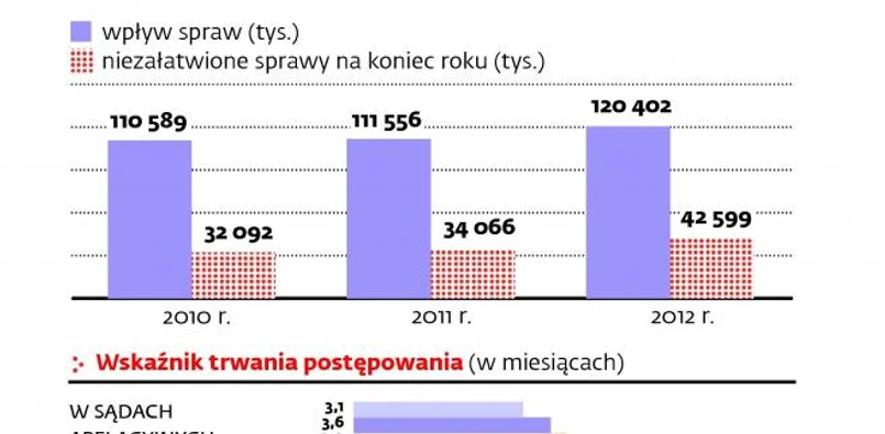 W ubiegłym roku wyraźnie wzrosła liczba spraw z zakresu prawa pracy, co przyczyniło się do wydłużenia takich postępowań. W czasie kryzysu ekonomicznego przybyło pozwów, a jednocześnie ubyło wokand, bo 1 kwietnia 2011 r. resort sprawiedliwości zlikwidował 74 wydziały pracy w sądach rejonowych. Ich zadania przejęły większe jednostki.