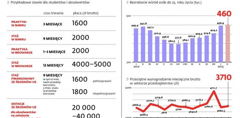Także w ramach programów UE absolwent może się dostać na staż, który ma mu pomóc otworzyć własną działalność. Trwa ok. 9 miesięcy, młody człowiek uczy się w tym czasie przedsiębiorczości – pisania biznesplanów, podstaw rachunkowości, marketingu, prawa podatkowego i księgowości. Później otrzymuje pieniądze na start – w zależności od programu 25–40 tys. zł. Więcej i bez wielomiesięcznych szkoleń można otrzymać w ramach konkursów rozpisywanych przez Polską Agencję Rozwoju Przedsiębiorczości. Najbliższy startuje już w czwartek. Przeznaczony jest dla osób do 27. roku życia, które chcą rozwijać biznesy elektroniczne. Dotacja może wynieść nawet 600 tys. zł.