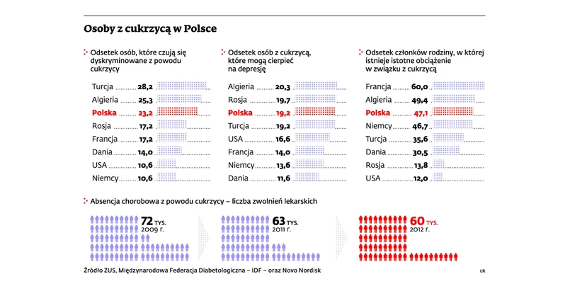 – Częściowo wynikają one z tego, że pracodawcy boją się chorych – przyznaje Dorota Szosland z Instytutu Medycyny Pracy w Łodzi – Krajowego Centrum Promocji Zdrowia. Wolą nie mieć cukrzyka w zespole, obawiając się, że nie będzie tak efektywny jak reszta zespołu. Często też utrudniają zatrudnionym powrót do pracy, gdy choroba się zaostrza. Profesor Leszek Czupryniak, szef Polskiego Towarzystwa Diabetologicznego, przyznaje, że ukrywanie choroby jest dość częste. Szczególnie w mniejszych miejscowościach, gdzie pokutuje postrzeganie cukrzycy jako choroby uniemożliwiającej zarobkowanie.