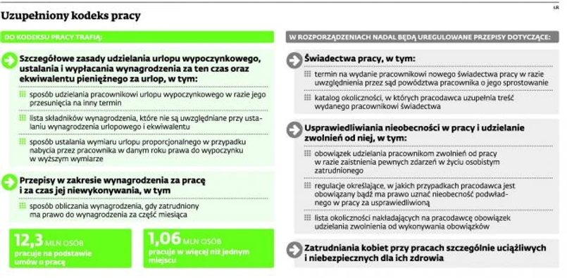 Rząd proponuje przenieść część regulacji z rozporządzeń do kodeksupracy. Nowe akty wykonawcze mają być wydane zgodnie z konstytucją.