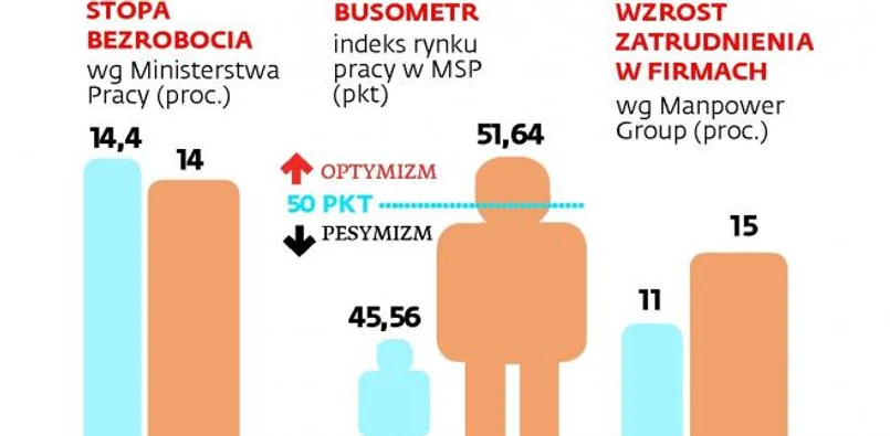 W I kw. wskaźnik Busometr pokazujący nastroje wśród przedsiębiorców z sektora małych i średnich firm oraz ich planowane działania w perspektywie najbliższego półrocza wzrósł do 48,11 pkt w porównaniu z 44,07 pkt w kwartale poprzednim – wynika z badania Związku Przedsiębiorców i Pracodawców. W firmach jest więc nieco więcej optymizmu, choć ogólnie atmosferę w nich nadal oceniać należy jako kiepską. Bo do granicy 50 pkt jeszcze trochę brakuje, a dopiero po jej przekroczeniu o nastrojach przedsiębiorców można mówić wprost, że są dobre.
