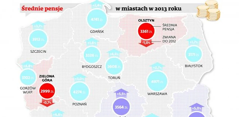 Narzekać za to mogą mieszkańcy Zielonej Góry i Olsztyna, gdzie przeciętne wynagrodzenia spadły w ubiegłym roku o około 1 proc. – Ten spadek w Olsztynie wynika m.in. ze struktury przemysłu w tym mieście i regionie. Rozwinięta jest u nas branża drzewna, w której tradycyjnie płace są stosunkowo niskie, a ich poziom zależy nawet od aury, która wpływa na produkcję firm i ich finanse – ocenia dr Katarzyna Chrobocińska z Uniwersytetu Warmińsko-Mazurskiego w Olsztynie. Ponadto jej zdaniem podwyżki wstrzymuje duże bezrobocie w mieście i jego okolicach. Z kolei w Zielonej Górze mało jest dużych przedsiębiorstw, w których na ogół płaci się lepiej niż w firmach małych i średnich.