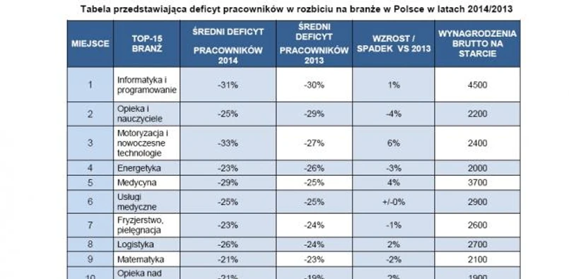 Z danych Work Service wynika, że największe szanse na znalezienie pracy będą mieli przede wszystkim absolwenci kierunków informatycznych. W sektorze IT można także liczyć na najwyższe wynagrodzenie na starcie kariery w porównaniu z innymi branżami. Deficyt informatyków i programistów w tym roku sięgnie w Polsce 31% i jest wyższy niż w roku ubiegłym. W związku z coraz silniejszym wkraczaniem technologii IT w naszą codzienność popyt na pracowników w tej branży będzie coraz większy. Rosnącego zapotrzebowania na fachowców doświadcza także sektor związany z motoryzacyjną i nowymi technologiami. To jedna z najdynamiczniej rozwijających się branż nie tylko w Polsce, ale i na świecie. W porównaniu z rokiem poprzednim o 6% wzrosło zapotrzebowanie na specjalistów z tego sektora. Gdzie zdobyć odpowiednie wykształcenie, żeby znaleźć pracę w tej dobrze rokującej branży? Przede wszystkim na Politechnice i kierunkach ścisłych. Nasi absolwenci powinni również pamiętać, że nie ma już ograniczeń w dostępie do wiedzy - studia na prestiżowej uczelni MIT można ukończyć, korzystając z wykładów i konsultacji za pośrednictwem internetu.