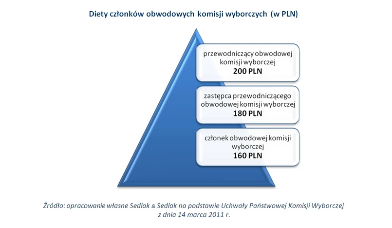 Członkowie obwodowych komisji wyborczych zarabiają od 160 PLN do 200 PLN. Kwoty te są zwolnione od podatku i zależą od pełnionej w komisji funkcji. Każdy członek obwodowej komisji wyborczej odpowiedzialny jest za przebieg wyborów: nadzoruje głosowanie oraz liczy głosy. Oprócz diety członkom obwodowych komisji wyborczych przysługuje również: