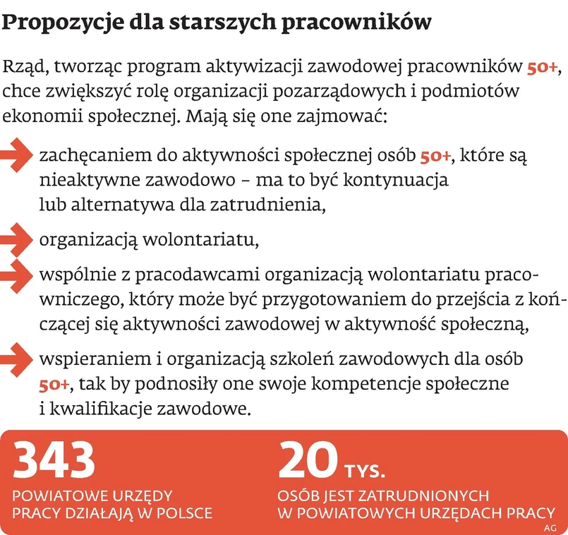 Niepokój posła Łukasza Borowiaka (PO) wzbudził rządowy „Programu Solidarność pokoleń. Działania dla zwiększenia aktywności zawodowej osób w wieku 50+”. Rząd chwalił się, że dzięki niemu starsi pracownicy będą dłużej aktywni zawodowo. Okazuje się, że zdaniem resortu pracy inicjowanie i realizowanie przedsięwzięć mających rozwiązać problemy na rynku pracy należy do zadań