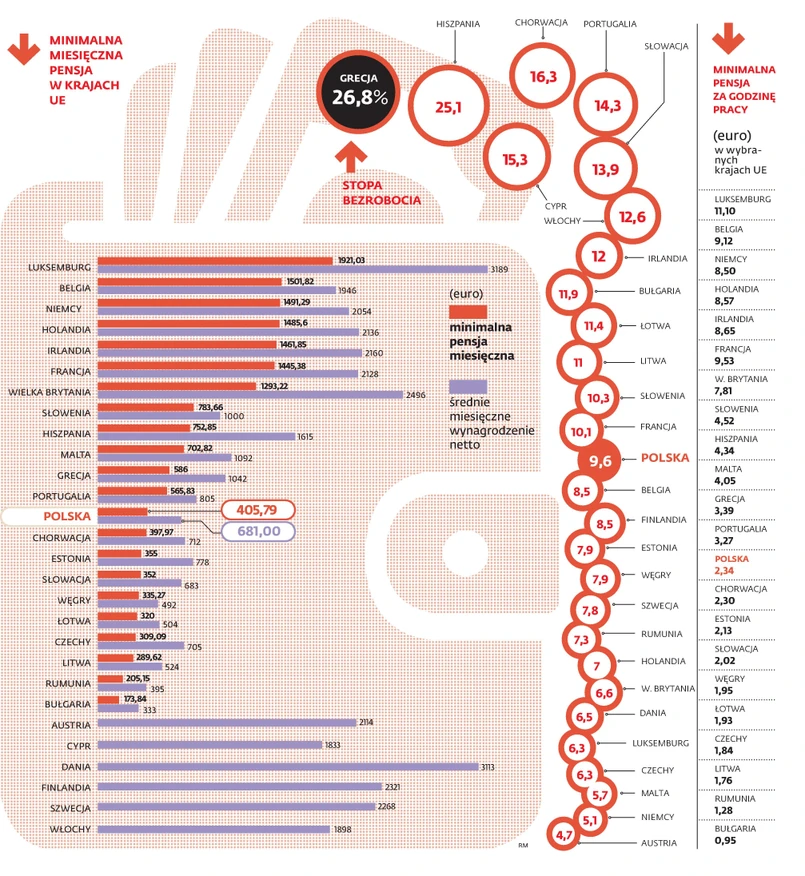 W UE zostanie sześć krajów bez ustalonego wynagrodzenia. Są wśród nich zarówno te z niskim, jak i te z dużym bezrobociem. Ale ważny jest stosunek najniższej pensji do średniej krajowej.